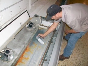 Any small areas of rust are sanded and sprayed with a rust inhibiting paint. →